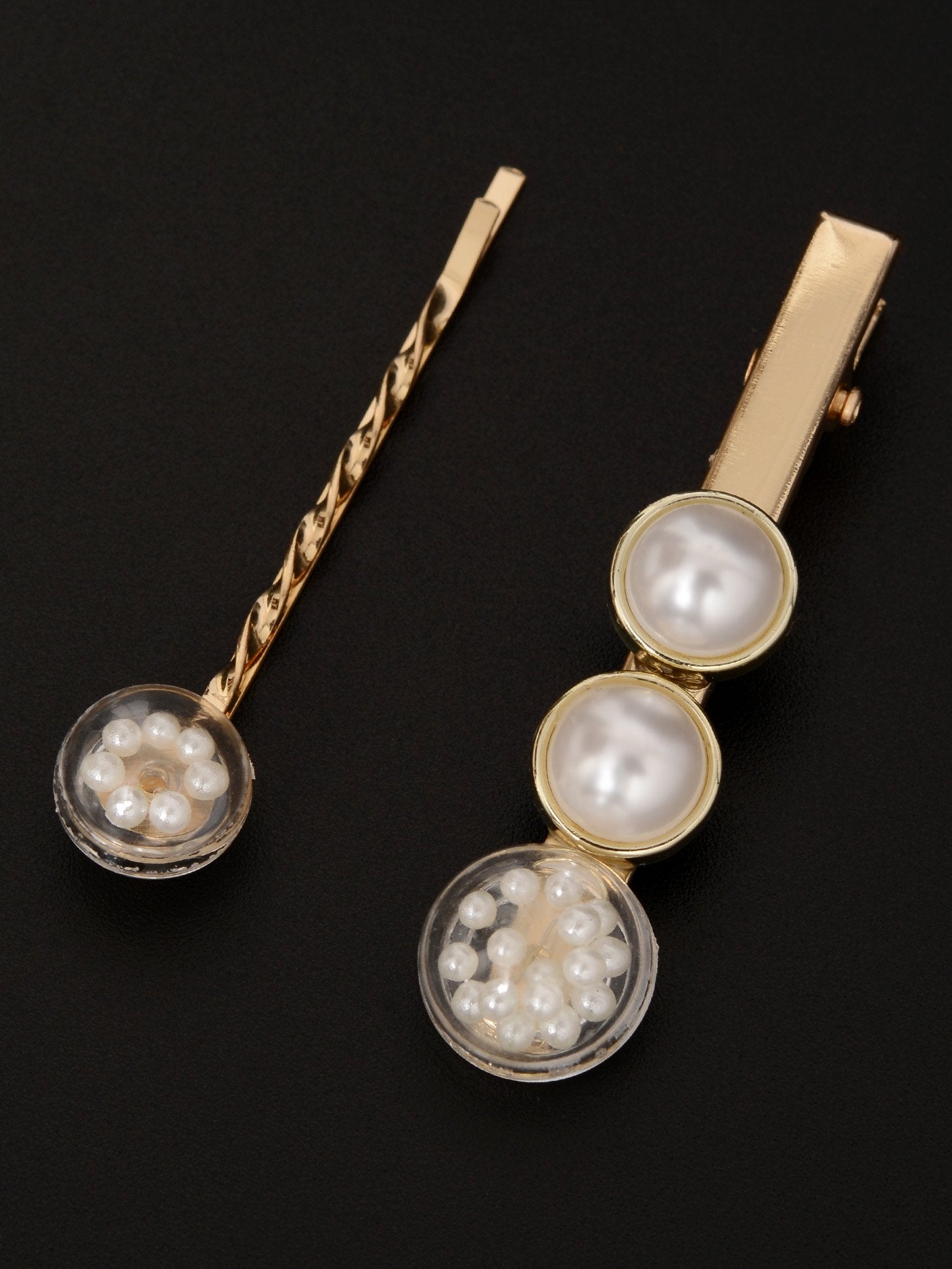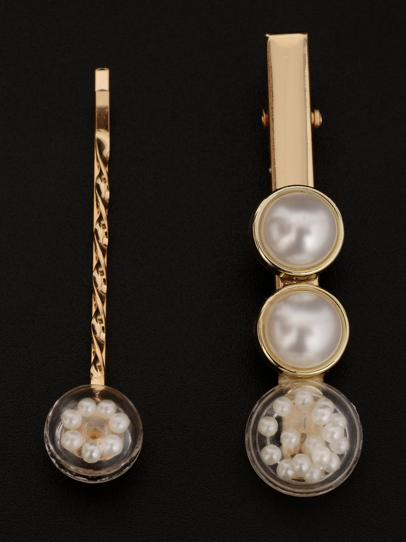 • Two metallic hair pins decorated with pearls